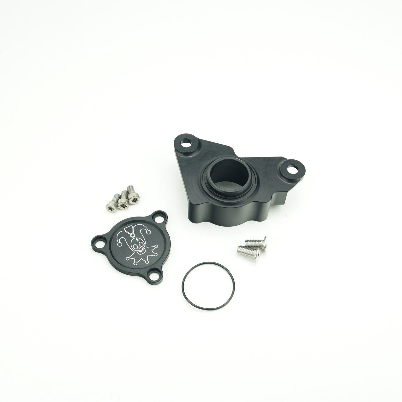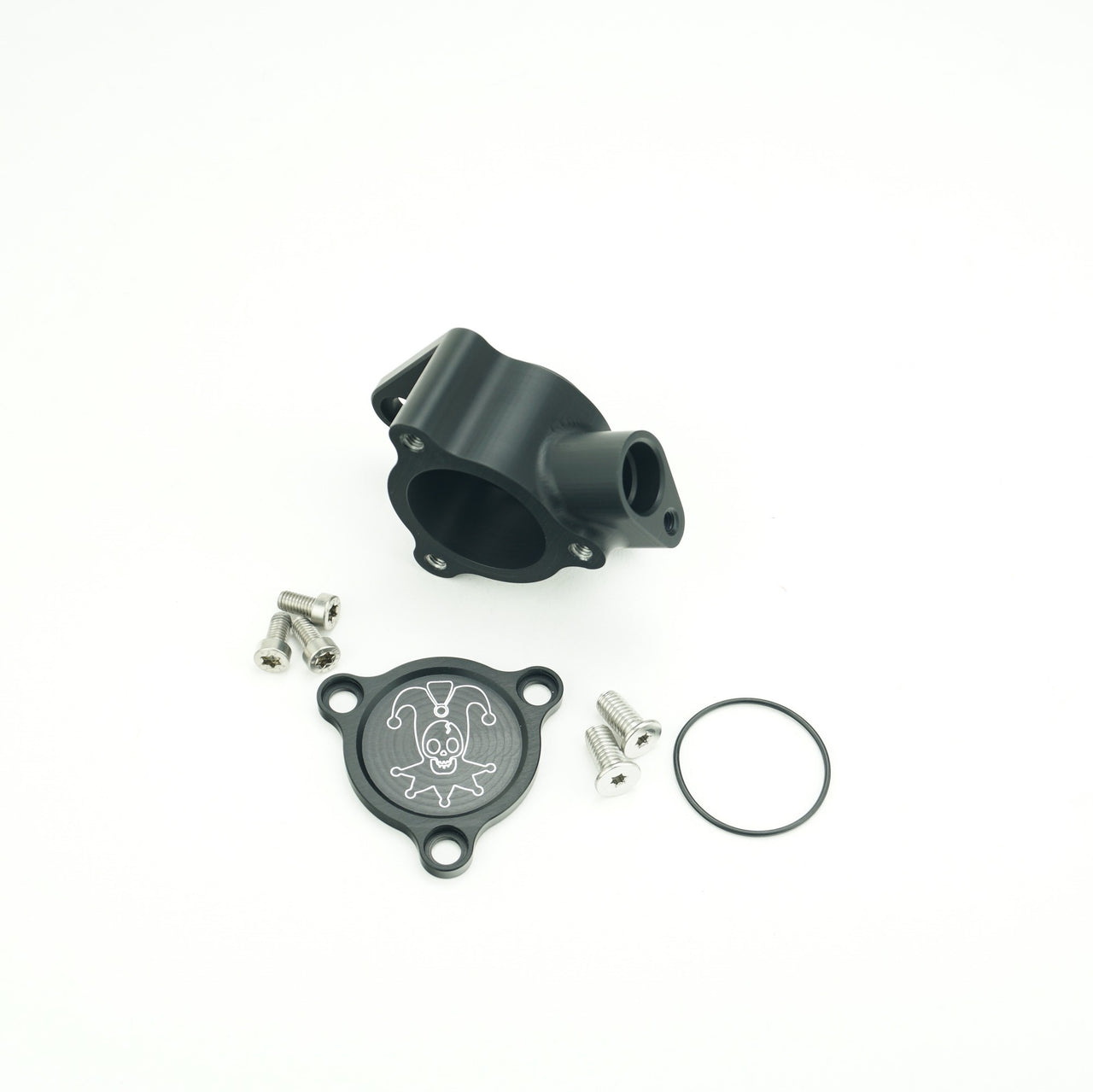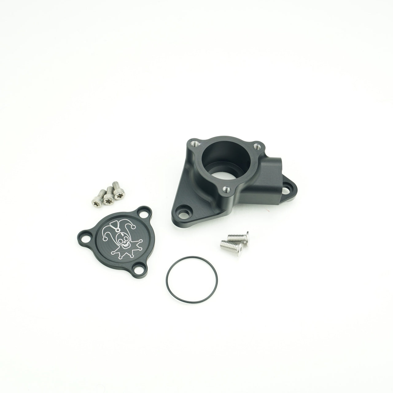 The housing and cover is made from billet 6061 aluminum and anodized black as standard and includes stainless steel hardware.